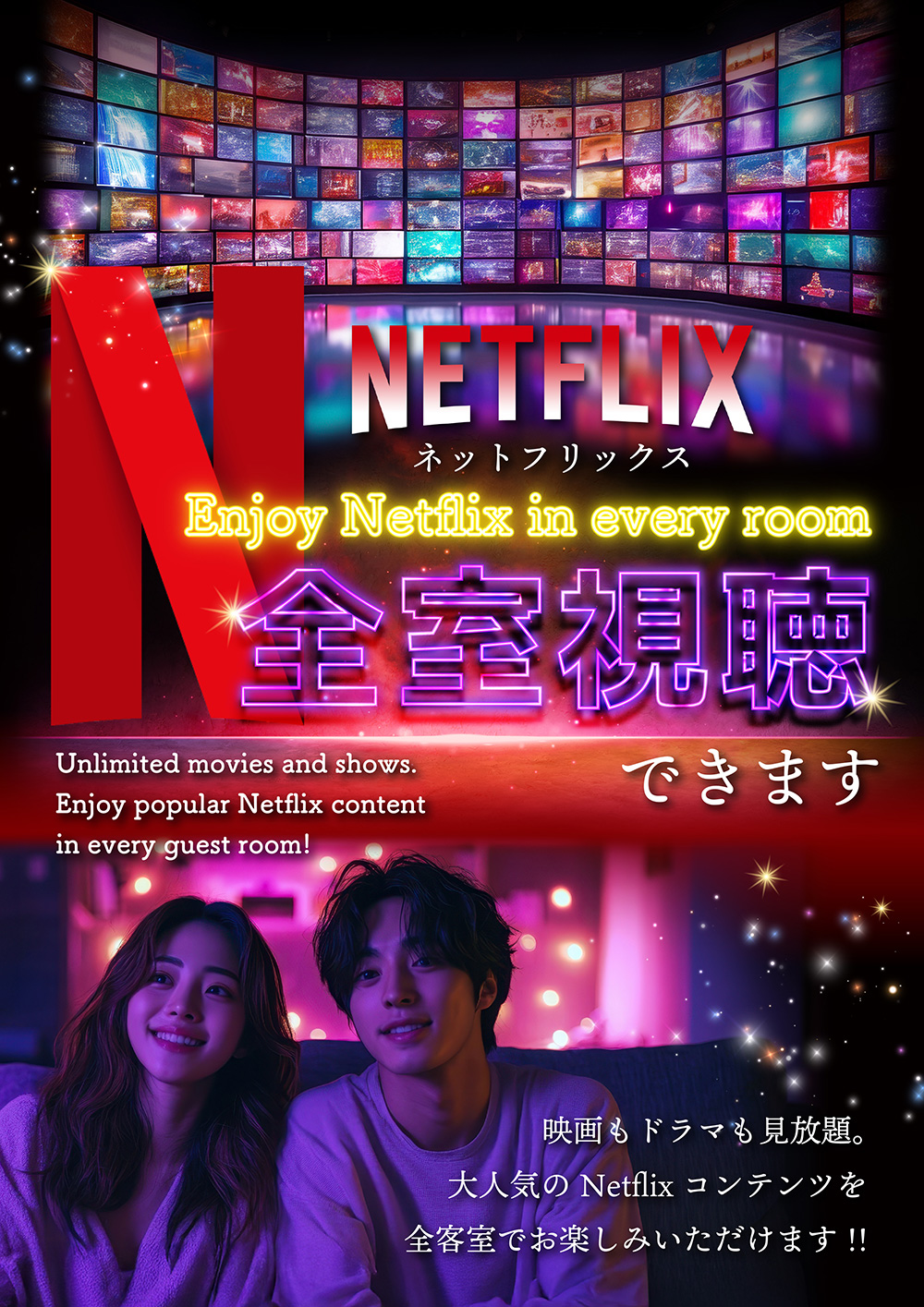いつもコスタリゾートをご利用いただき誠にありがとうございます。当店では長時間の滞在もお楽しみいただけるように映像コンテンツも豊富に用意しております。NETFLIX、DAZN、YOU
